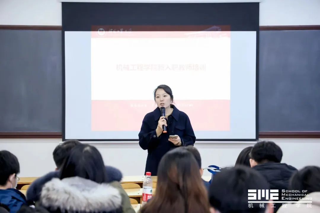 教学秘书石亚茹老师从本科生培养方案和教学大纲的制定、教研项目的申请、教室借用、管理系统的运用以及课程思政建设等方面,向新入职教师进行了详细的讲解。