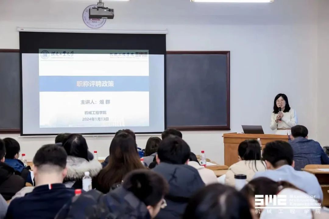 力学系俎群老师从职称评聘的时间、职称序列及评审条件等几个方面,向新入职教师对相关政策进行了详细的解读。