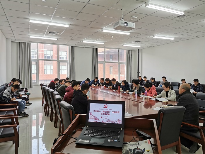 王书记首先传达了学校主题教育工作推进会议精神,强调要将主题教育与学院中心工作有效结合,扎实开展各项工作。随后随机抽取三个党支部对主题教育进展情况进行汇报,机设系党支部书记刘宇红分别从实践活动和理论学习两个部分对主题教育开展以来支部进展情况进行了汇报。机设系党支部进行了校史馆、平津战役纪念馆和周邓纪念馆的参观活动,并且每两周开展集中政治理论学习,集中研讨学习文件,支部各成员对相应音频资料进行自学,学习后在通过多种方式发表自己的感想。刘老师表示通过此次主题教育的学习有效地增强了广大教工责任心和使命感,更加有效促进了各项工作的有序开展。