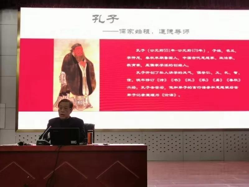 赵校长分别从儒家思想的根本要义、儒家思想的发展过程、儒家思想的成功之道、人道的四层境界以及儒家思想给我们的启示五个方面进行讲授。在讲述的过程中,赵校长将儒家思想同同学们的日常生活学习相结合,通过列举孔子、孟子、荀子、董仲舒等人的思想,而后又通过仁义礼智信孝六个方面阐述做人的道德准则,让师生们切实感受到了中华优秀传统文化的杰出智慧和优秀思想。