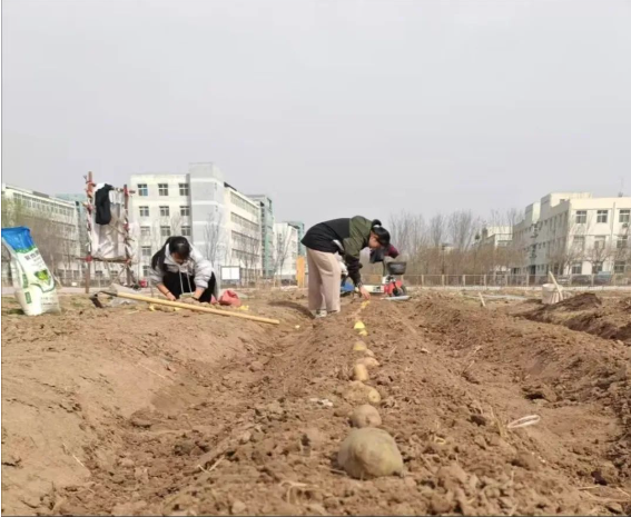 3月24日-27日,同学们开展马铃薯种植实践,在老师讲授与指导下完成了切块、播种、覆土等工序,在劳动中体验农耕文化。