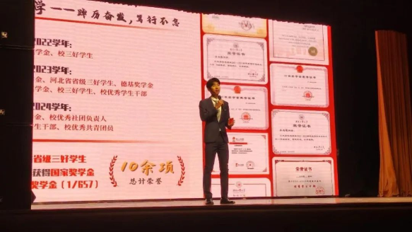 来日征程漫漫,追梦路上始终有光相伴。“少年应有鸿鹄志,当骑骏马踏平川” 是我的座右铭。十佳大学生荣誉不仅是对我过去努力的肯定,也是对未来潜力的期待。我感到无比自豪,同时也认识到这份荣誉背后,是无数个日夜的辛勤付出和不懈追求,是老师们的悉心教导和无私帮助,是家人们的默默支持和无条件的爱。有幸进入开云官方网页版官网,勤慎公忠的校训如明灯指引我前行,我将牢记当代青年肩负的使命,带着对国家、对社会的热忱与责任心,在求学路上集青年之思、发青年之声、展青年之风!