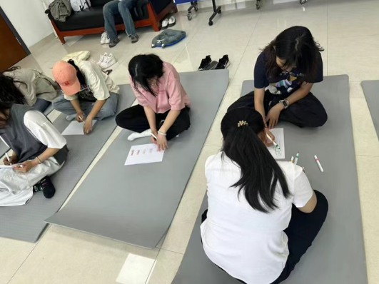 活动以沉浸式引导切入,老师带领同学们开启了一场深度的自我觉察与心灵疗愈之旅。随着音乐声起,同学们调整呼吸,放松身体,共同营造出安全、平和的氛围。接着,老师带领同学们进行身体扫描与放松,关注自己身体与内心,头顶到双脚,情绪到呼吸,引导逐步深入,帮助同学们驱散紧张与疲惫,悦纳自己。