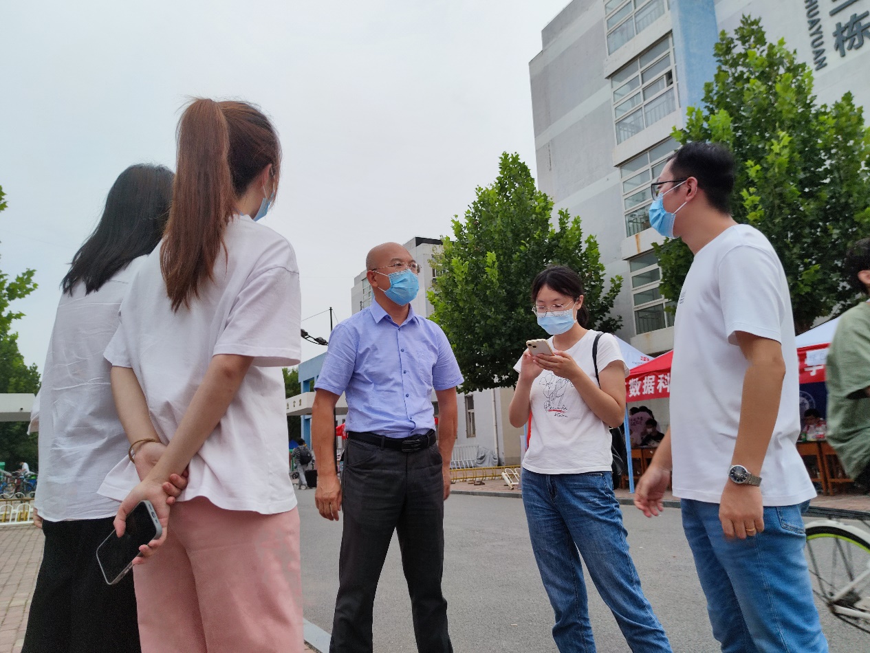 迎新点周围,学院领导与辅导员老师们深入学生宿舍,了解新生入学情况,耐心解答新生各个方面的问题,带去学校对新生的亲切问候,拉近了师生间的距离。