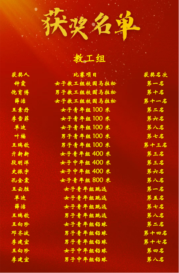 2025 年校运动会的赛场上,开云官方网页版官网师生团结一致、奋勇拼搏,荣获教工女子组团体第一名、教工男子组团体第四名、体育道德风尚奖;学生女子组团体第五名、学生男子组团体第二名、2024年度阳光体育工作评比一等奖。