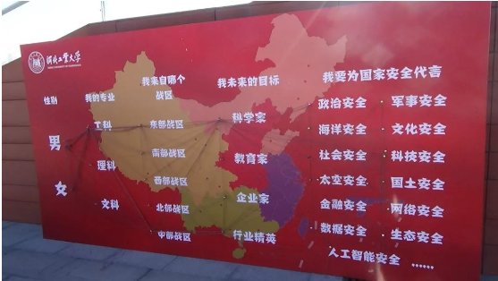 打卡活动以中国人民解放军五大战区为背景,精心设置了五个闯关打卡点位,参与者在首个点位领取出征状,按指引顺序前往各个打卡点,在各点位学习五大战区相关国防知识,答题正确即可获得贴纸1张,最终集齐五大战区贴纸视为打卡成功。活动终点处设有主题绕绳活动,同学们用绳线将个人专业、家乡、发展目标与所在战区连绕在一起,直观感受国家安全与个人发展的紧密联系。