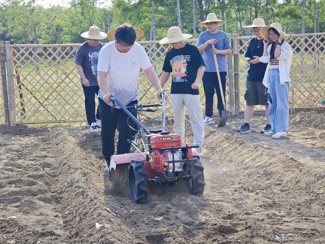 工欲善其事,必先利其器。学院先行购置组建小型旋耕机对田地进行翻土整理,在使用旋耕机的同时辅导员老师给学生们讲解旋耕机的构造、原理以及操作方式,开设了一堂生产实践课。