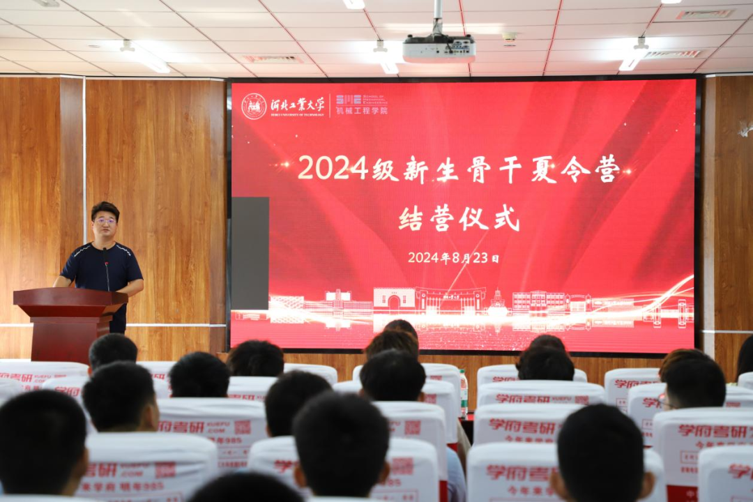 接着,优秀营员代表李佳贺发言。他总结了夏令营过程中的所见所感,表达了将继续发扬机械学子勤劳奋斗的品质,践行“勤慎公忠”的校训,努力践行青年人的责任与担当。