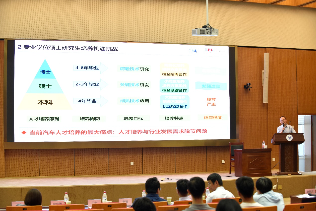 袁涛教授首先提出了“本硕贯通机械工程大类专业的思政育人体系”的构建方案。他强调,要将工程教育与课程思政紧密结合,着重培养学生的家国情怀、理想信念、工匠精神、契约精神和道路自信,为培养新时代的高层次人才奠定坚实基础。师鹏教授就“深入推进分类培养,全面提升研究生培养质量”做了报告。他指出,在当前大国竞争日趋激烈、航天技术高速发展的背景下,研究生教育应更加注重实践能力的培养、解决问题能力的提升和自我激励内驱力的增强。这一观点引起了与会者的广泛共鸣。刘振忠教授聚焦“产教融合、科研融合”的议题,提出了地方高校“1+4+4”科研与人才培养模式的构建思路。他强调,要积极响应党的“二十大”报告中对教育、科技、人才培养的战略部署,通过产教融合、科研融合,提升研究生的综合素质和创新能力。最后,王刚教授针对汽车产业变革的趋势和发展方向,提出了“产学研用”校企协同培养专业学位硕士研究生的总体思路,展示了近年来培养研究生的阶段性成果。他强调,要紧跟产业发展步伐,加强学校与企业之间的合作,共同培养符合社会需求的高素质人才。