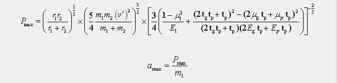 根据赫兹弹性碰撞理论,头部模型和挡风玻璃可以简化为球体。头部模型的质量为m1,半径为r1,而挡风玻璃的质量和曲率半径分别为m2和r2。如图3所示,头部模型碰撞冲击速度为v。基于牛顿第二定律并考虑风窗玻璃夹层结构刚度,推导获得头部模型冲击风窗玻璃不同部位加速度峰值,与试验相比误差在10%以内,可用于汽车车身设计方案早期快速评估中。