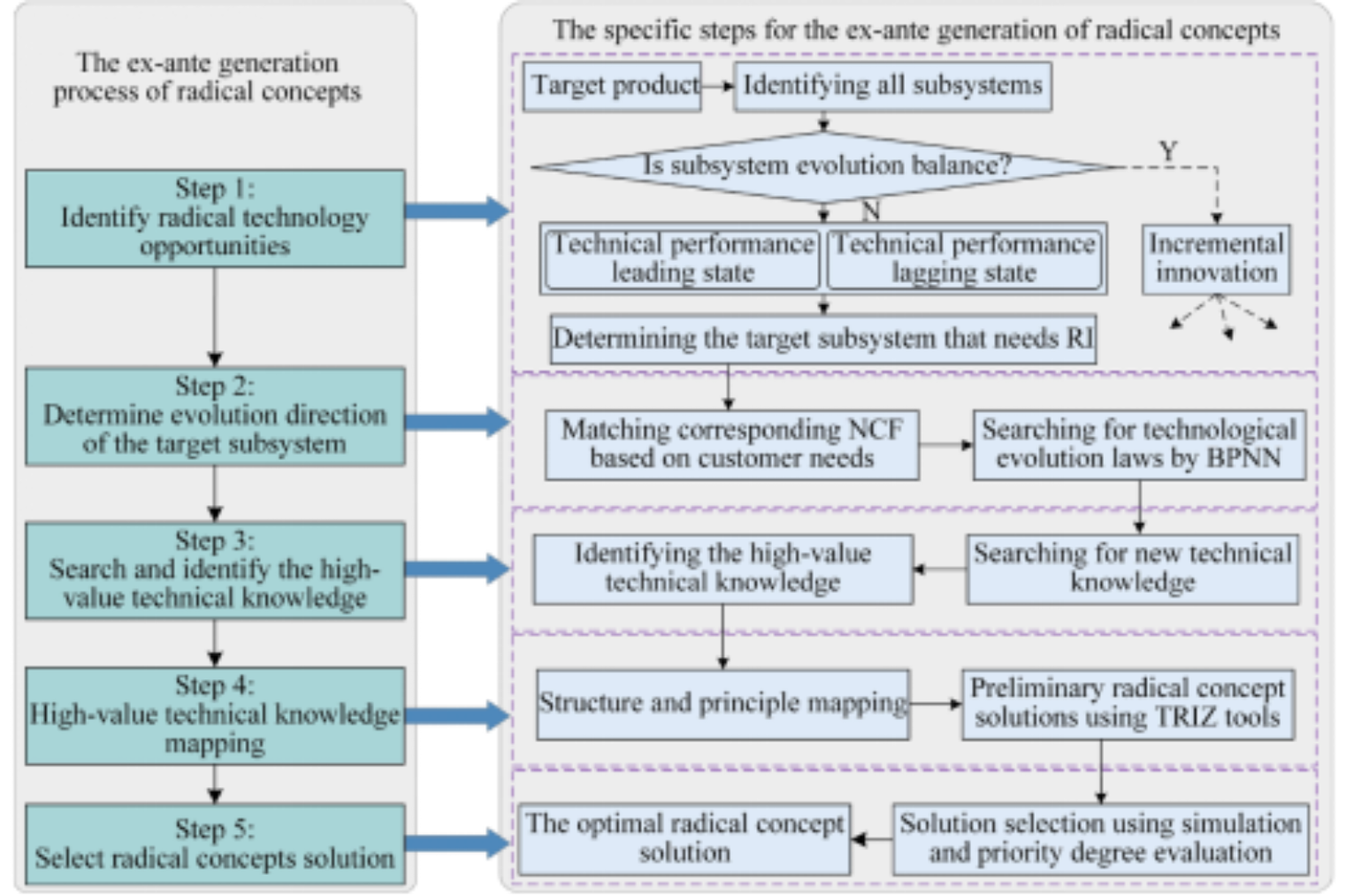 为了填补这一空白,河北工业大学檀润华教授、张路路博士等人提出了一种基于技术进化的突破性概念事前产生整体方法。该方法通过构建突破性技术机会识别模型,并结合人工神经网络、技术进化定律、类比设计等多种工具,不仅为企业工程师提供了一种高效的突破性概念事前产生过程,显著降低了企业主动进行突破性创新开发的风险,而且丰富了突破性创新的相关研究,使整个突破性创新的知识体系更加完整(图1)。
